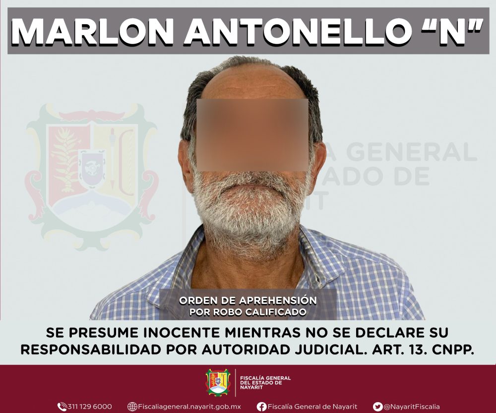 Elementos de la Agencia de Investigación Criminal de Nayarit ejecutó una orden de aprehensión en la ciudad de Tepic contra Marlon Antonello “N”, por su probable participación en hechos que para la ley configuran el delito de robo calificado, cometido en perjuicio del patrimonio de una persona de sexo masculino, cuya identidad se reserva para salvaguardar su privacidad e integridad.