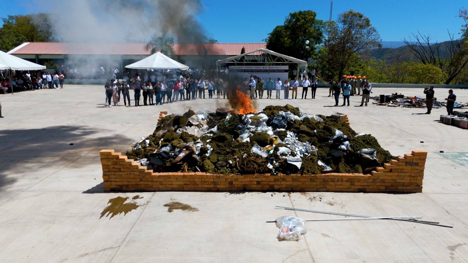 Como parte de la jornada, se realizó la incineración de narcóticos y objetos del delito, así como la destrucción de 592 máquinas tragamonedas aseguradas en distintas acciones operativas, además de la quema de casi 2 toneladas y media de sustancias ilícitas. El mandatario estatal reiteró que se mantiene un combate firme contra actividades que dañan a las comunidades y ponen en riesgo, especialmente, a las y los jóvenes.