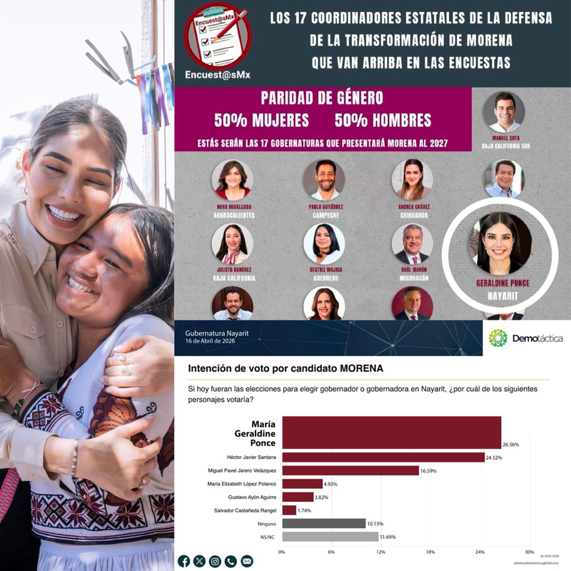 Las coincidencias entre ambas encuestas refuerzan la percepción de que Geraldine Ponce no solo lidera las preferencias, sino que también se consolida como un factor de unidad al interior de Morena en el estado, siendo el perfil morenista mejor posicionado en Nayarit.