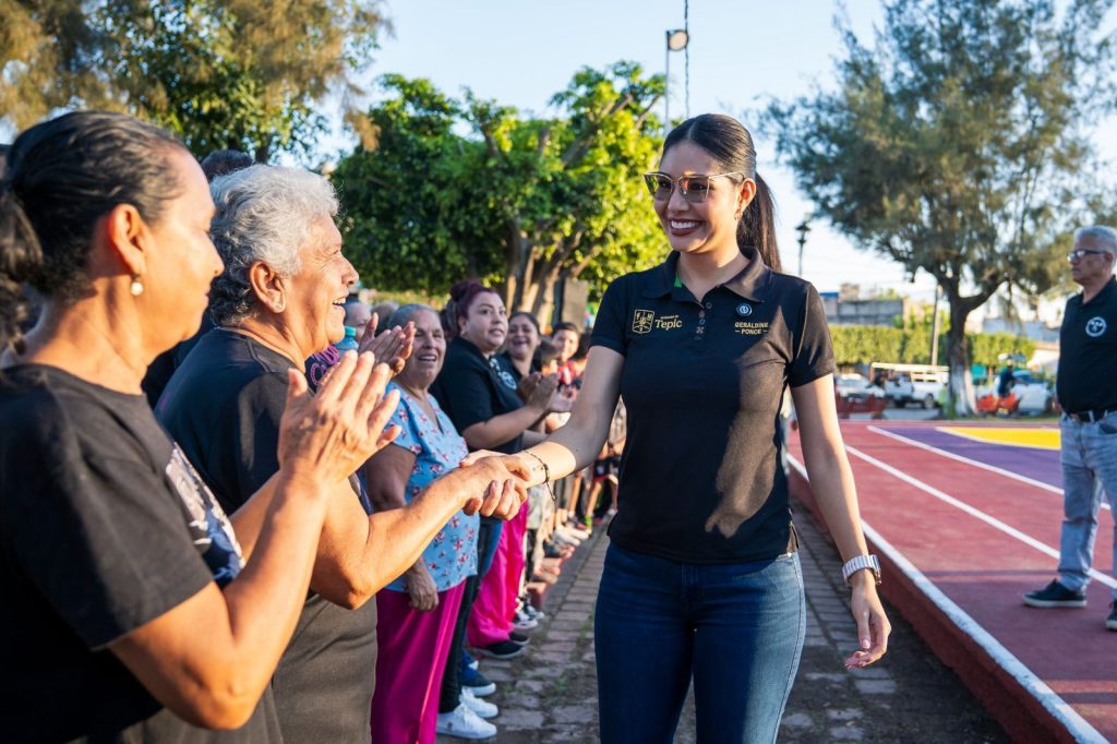 Tepic.- La presidenta municipal de Tepic, Ing. Geraldine Ponce, entregó completamente rehabilitado el parque, la cancha de usos múltiples y el área de juegos infantiles de la colonia Comerciantes, cumpliendo un compromiso más con las familias tepicenses.