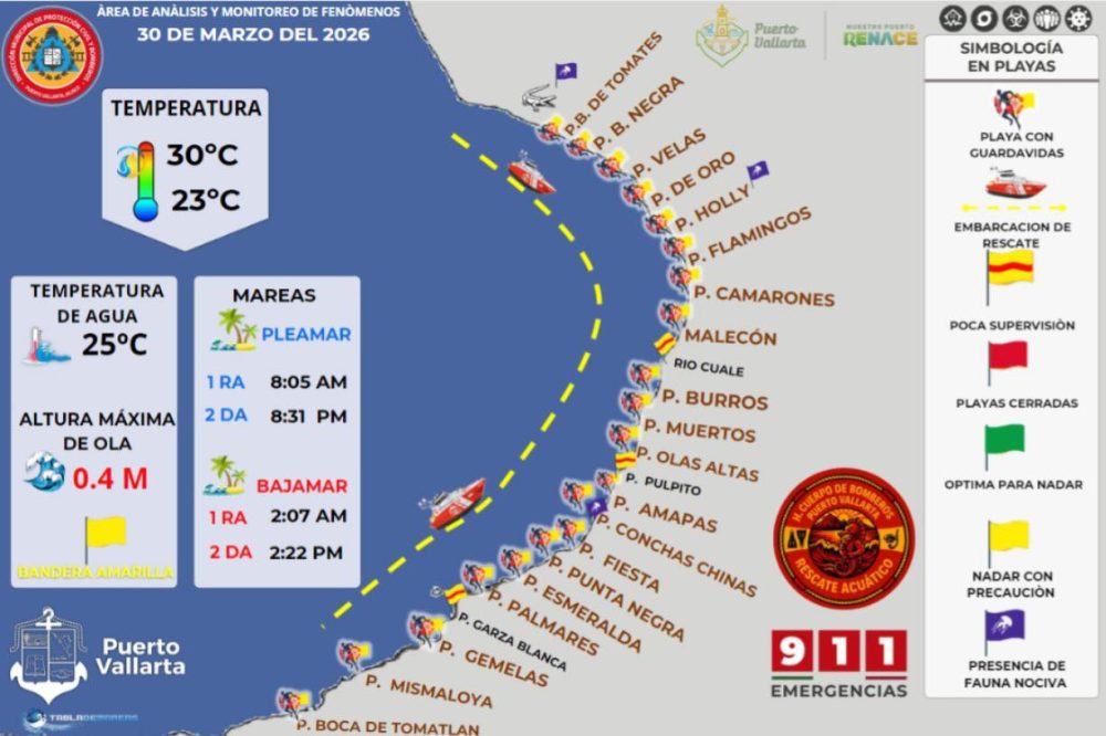 La Dirección de Protección Civil y Bomberos informa el código de banderas en playas vigiladas por nuestros guardavidas. Durante esta temporada de Semana Santa y Pascua, es fundamental atender las indicaciones para disfrutar del mar de forma segura.