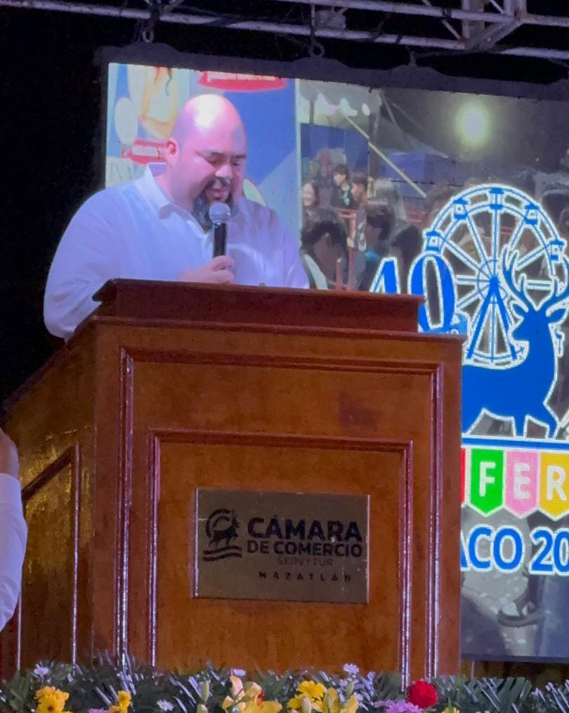 En su mensaje, el regidor reconoció la importancia de la Expo Feria Canaco como un importante motor para el crecimiento del municipio, ya que dinamiza la economía local, brinda oportunidades y fortalece el comercio que es el corazón de Mazatlán.