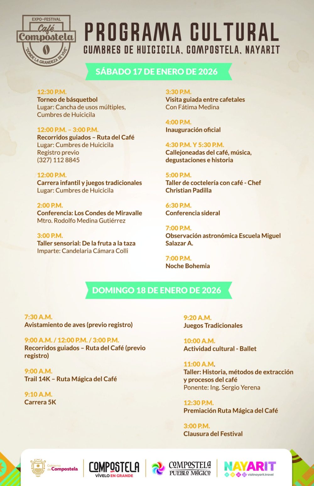 Y mucho más dentro de nuestro programa cultural que celebra la esencia cafetalera de Nayarit.