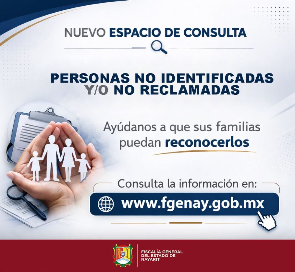 La Fiscalía General del Estado de Nayarit habilita un nuevo espacio en su sitio web oficial donde podrán consultarse cédulas de personas no identificadas y/o no reclamadas, con el objetivo de facilitar su reconocimiento por familiares.