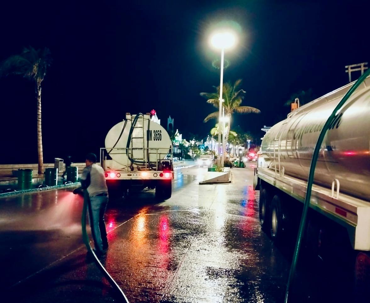 Mazatlán, Sinaloa, 1 de enero de 2026.- Con el objetivo de mantener en óptimas condiciones los espacios públicos y garantizar un entorno limpio y ordenado, el Gobierno Municipal de Mazatlán realizó un operativo especial de limpieza en el malecón, tras el festejo de Año Nuevo que congregó a miles de familias y turistas.