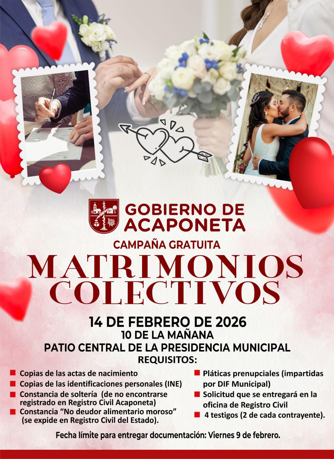 • Constancia de soltería (de no encontrarse registrado en Registro Civil Acaponeta).