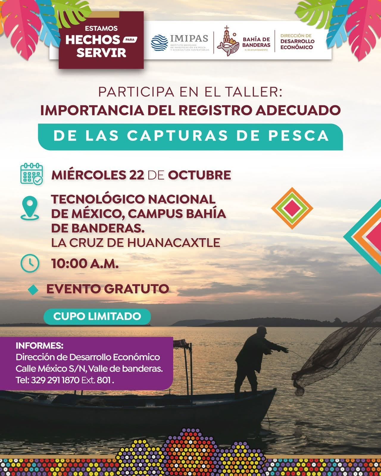 Con el propósito de fortalecer las buenas prácticas en el sector pesquero, el Gobierno de Bahía de Banderas, que encabeza el presidente municipal Héctor Javier Santana García, a través de la Dirección de Desarrollo Económico, invita a los pescadores del municipio a participar en el taller gratuito “Importancia del Registro Adecuado de las Capturas de Pesca”.