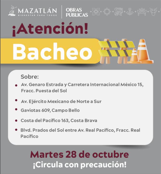 El Gobierno de Mazatlán continúa con trabajos de bacheo en diferentes puntos de la ciudad para mejorar tu movilidad.