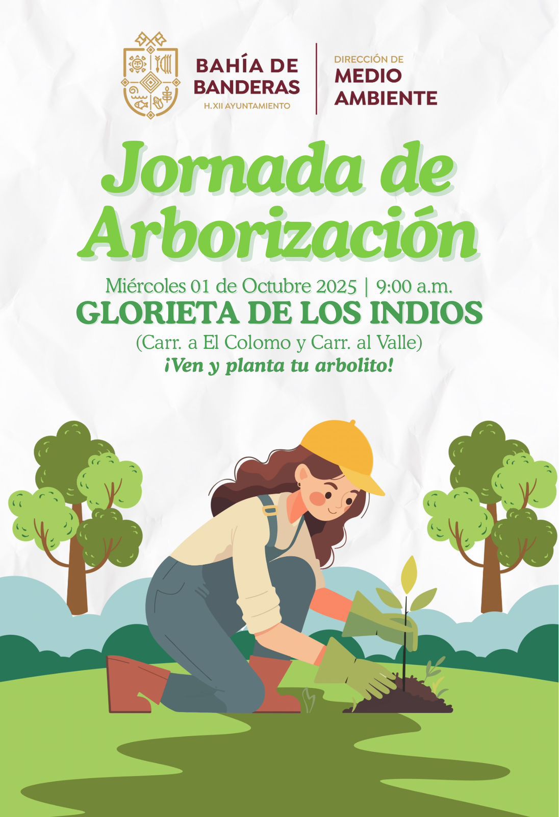El H. XII Ayuntamiento de Bahía de Banderas, que encabeza el presidente municipal Héctor Santana, a través de la Dirección de Medio Ambiente, convoca a la ciudadanía a participar en la próxima Jornada de Arborización.