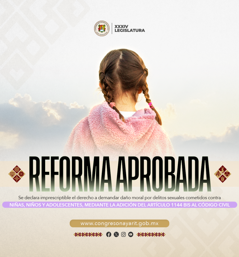 Justicia sin caducidad Congreso de Nayarit diciembre 15, 2025diciembre 15, 2025Gcn NoticiasDeja un comentario en Justicia sin caducidad Daño moral por delitos sexuales contra menores puede reclamarse siempre.