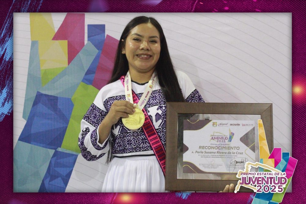 Ella es Perla Susana Rivera de la Cruz, ganadora del Premio Estatal de la Juventud 2025, en la distinción de Fortalecimiento a la Cultura de Pueblos Originarios, una joven a la que se le reconoce por su compromiso, liderazgo y amor por sus raíces, quien contribuye a preservar, fortalecer y dignificar la identidad de nuestros pueblos originarios.