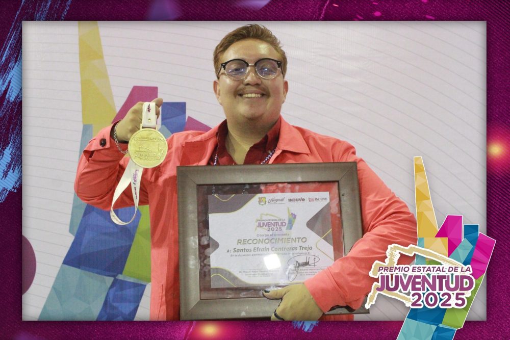 El es Santos Efraín Contreras Trejo, ganador del Premio Estatal de la Juventud 2025, en la distinción de Expresiones Artísticas, a quien se le reconoce por su talento, creatividad y dedicación.