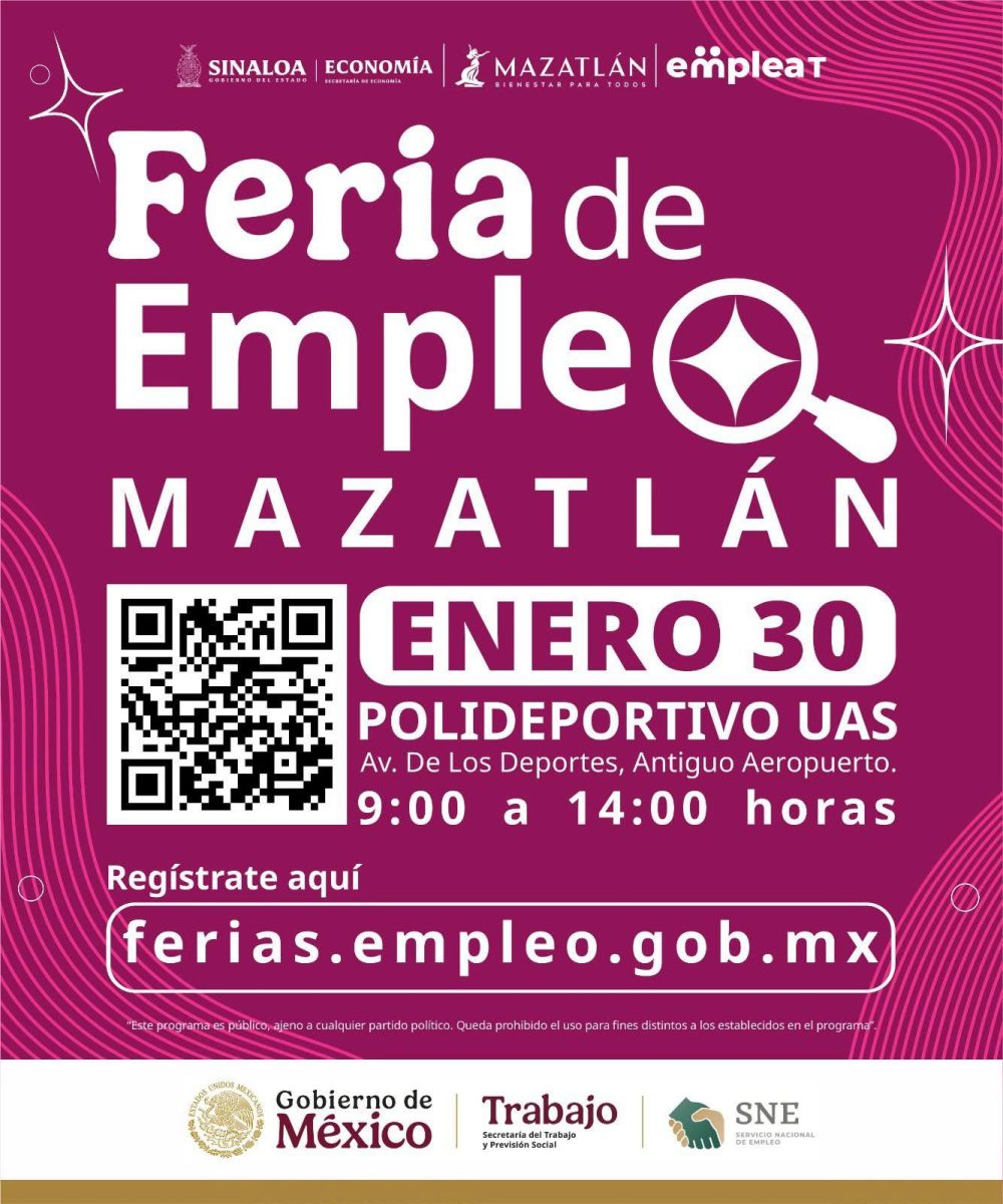 El Gobierno Municipal de Mazatlán, en coordinación con el Gobierno del Estado, te invitan a participar en este espacio que reúne ofertas laborales reales y empresas comprometidas con generar oportunidades para todas y todos 🤝✨