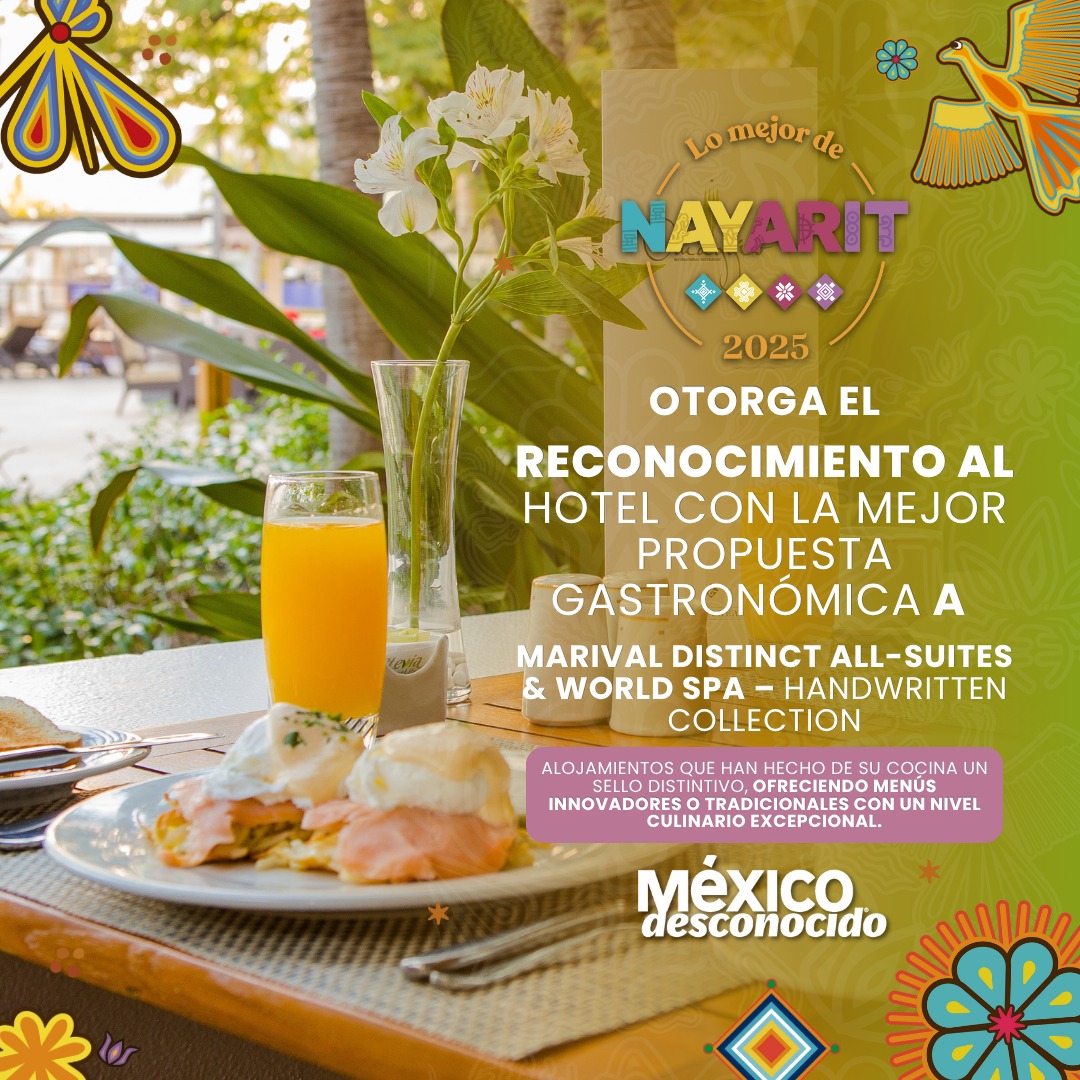 En el marco de la distinguida premiación “Lo mejor de Nayarit” realizada por la revista “México desconocido” en conjunto con la Secretaría de turismo del estado de Nayarit otorgo el premio de “Hotel con la mejor propuesta gastronómica” lo recibe José Alfredo Jiménez de MARIVAL DISTINCT ALL-SUITES & WORLD SPA-HANDWRITTEN COLLECTION una propiedad que ha sabido elevar el concepto de hospitalidad integrando de manera magistral una cocina de alto nivel como parte esencial de la experiencia de hospedaje.