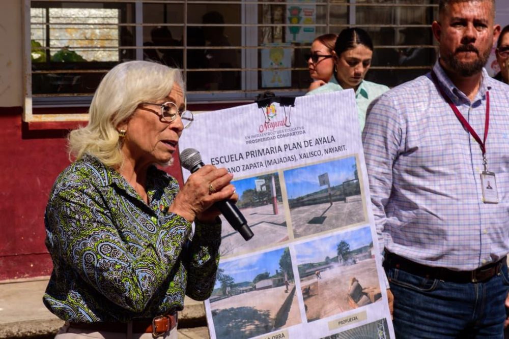 El gobernador del estado, Miguel Ángel Navarro Quintero, junto con su esposa, la doctora Beatriz Estrada Martínez, presidenta del Sistema DIF Nayarit, visitó la escuela primaria Plan de Ayala, en la localidad de Emiliano Zapata (Majadas), municipio de Xalisco.