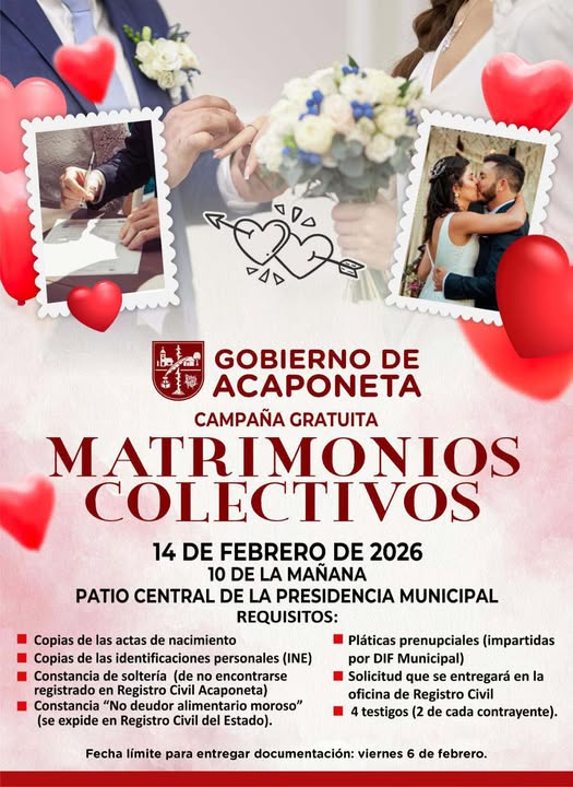 Gobierno De Acaponeta a través de la dirección del 𝗥𝗲𝗴𝗶𝘀𝘁𝗿𝗼 𝗖𝗶𝘃𝗶𝗹 te invitan a participar en la ¡𝗖𝗮𝗺𝗽𝗮𝗻̃𝗮 𝗚𝗿𝗮𝘁𝘂𝗶𝘁𝗮!.