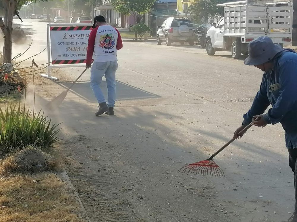 En Av. de las Torres, en Real Pacífico, y en la calle Framboyanes, se llevó a cabo la poda de maleza en camellones para mejorar la imagen y el orden urbano de la zona