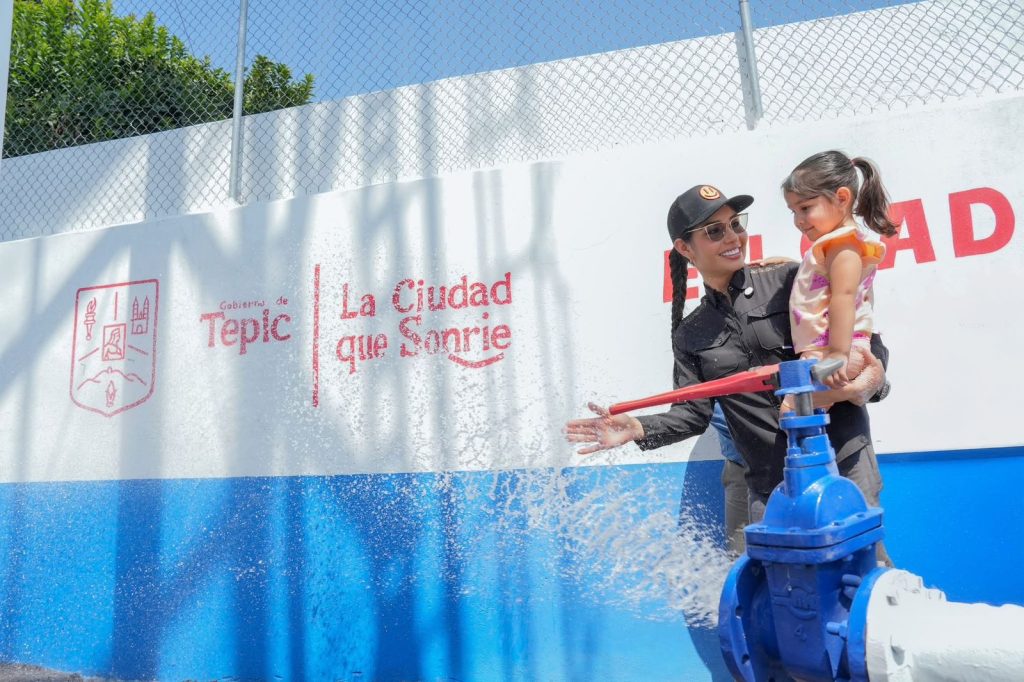 MILES DE PERSONAS SON BENEFICIADAS con el nuevo pozo profundo de agua, recién rehabilitado y equipado en el Infonavit Los Sauces, informa la presidenta municipal de Tepic, Geraldine Ponce, quien detalló que se trató de una inversión de 2.5 millones de pesos.