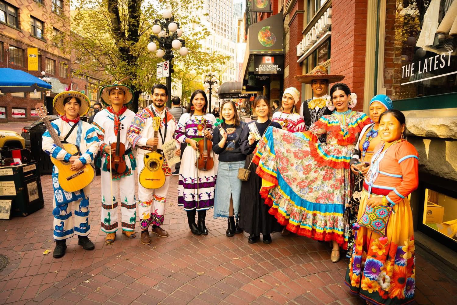 💃 Entre calles llenas de historia, como el icónico Gastown Steam Clock, se presentaron danzas folclóricas, música regional y coloridos trajes típicos que mostraron la riqueza cultural de nuestro estado.