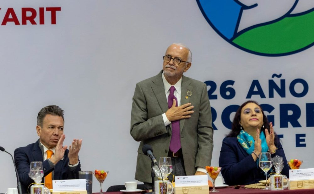 El gobernador del estado, Miguel Ángel Navarro Quintero, participó en la Sexta Reunión Regional de Seguridad, realizada en Zacatecas, encabezada por el gobernador de esa entidad, David Monreal Ávila, junto con sus homólogos de Aguascalientes, Colima, Guanajuato y Jalisco, así como autoridades federales y mandos de las Fuerzas Armadas.