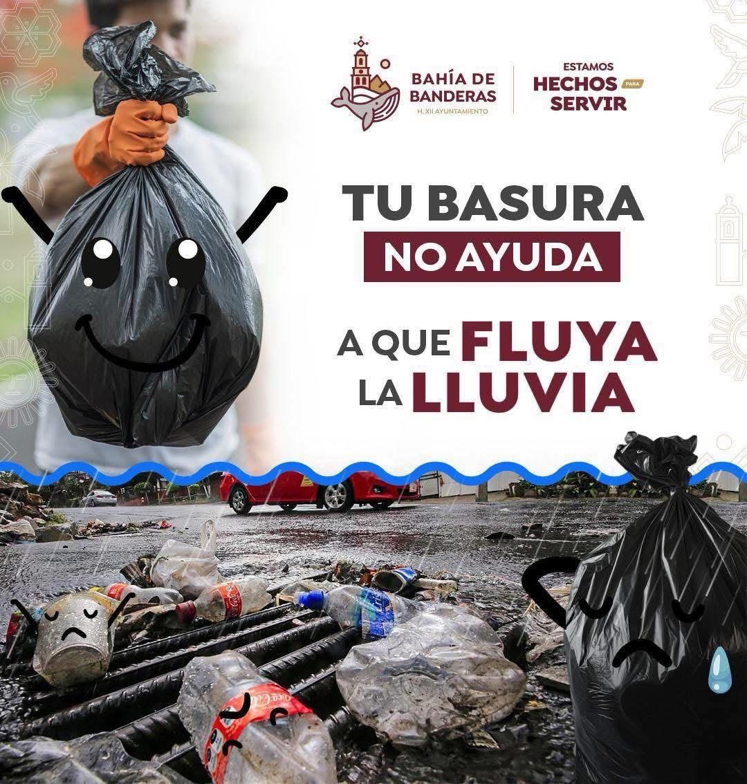 ¡No saques la basura en la lluvia! 🌧️🚮 Bahía de Banderas septiembre 20, 2025Redacción La lluvia puede dispersar la basura y tapar las bocas de tormentas en tu comunidad, resguárdala en casa. ProtecciónCivilDeBahía #HechosParaServir