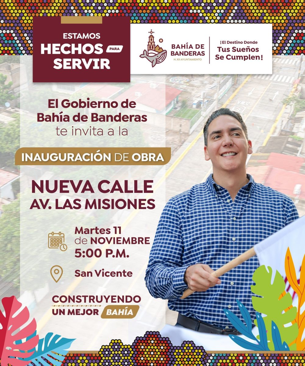 En este Gobierno de Bahía de Banderas ,el cual dirige el Lic. Hector Santana , estamos muy contentos de invitarlos a la inauguración de la nueva calle Las Misiones