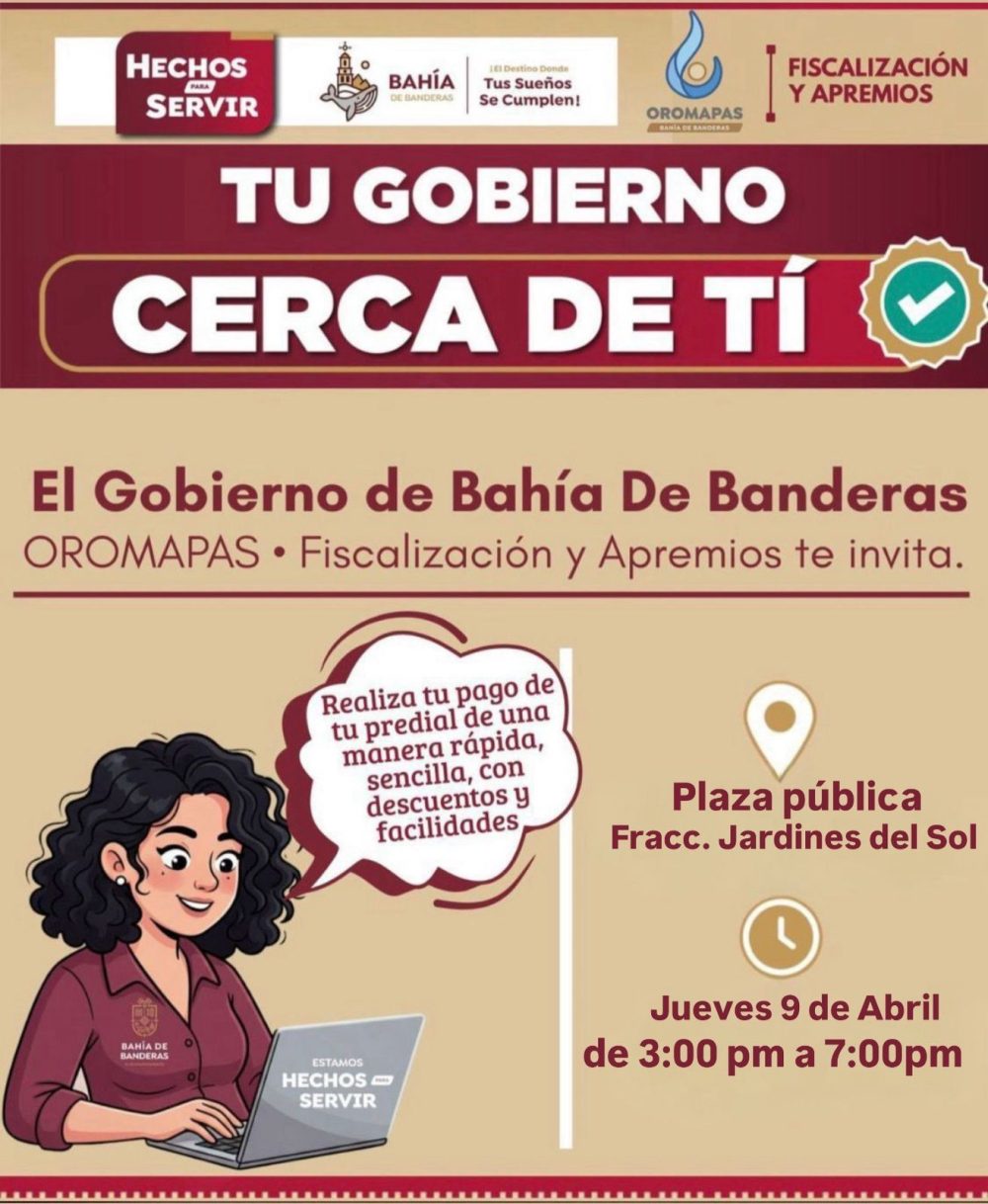 #BahíaDeBanderas#TuGobiernoCercaDeTi#OROMAPAS#Fiscalización#Predial#Descuentos