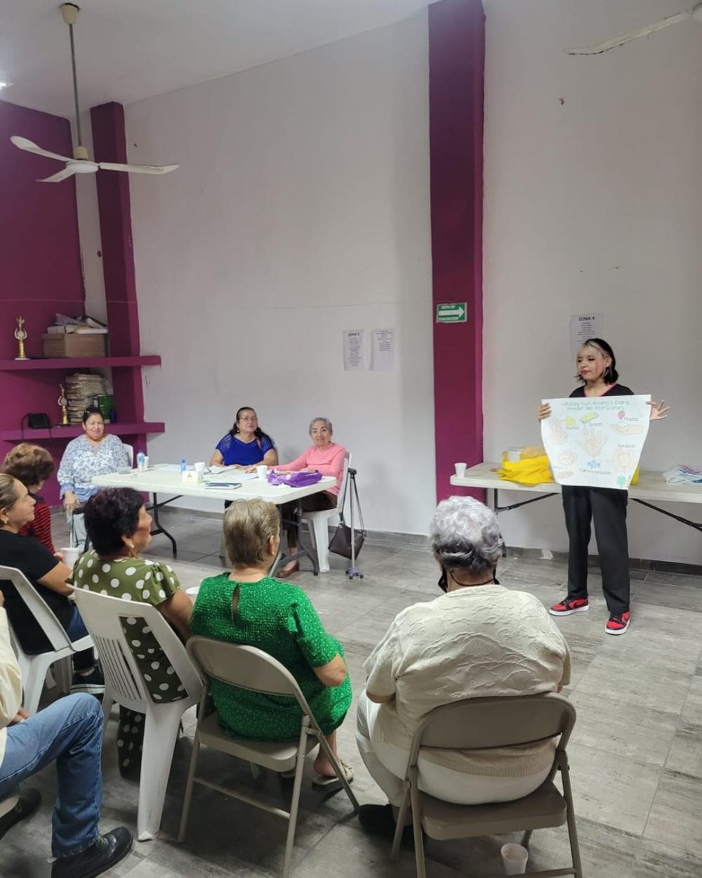 Se abordaron temas como alimentos que favorecen la memoria y el uso de las manos para medir porciones, en acciones alineadas con la visión de bienestar de la Presidenta Municipal Estrella Palacios.