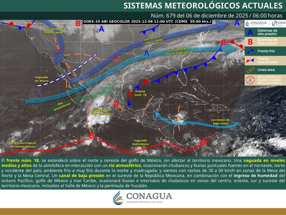 🚨Pronóstico de lluvias para hoy 06 de diciembre de 2025: