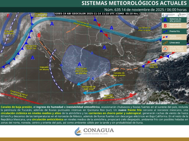 Pronóstico de lluvias para hoy 14 de noviembre de 2025: