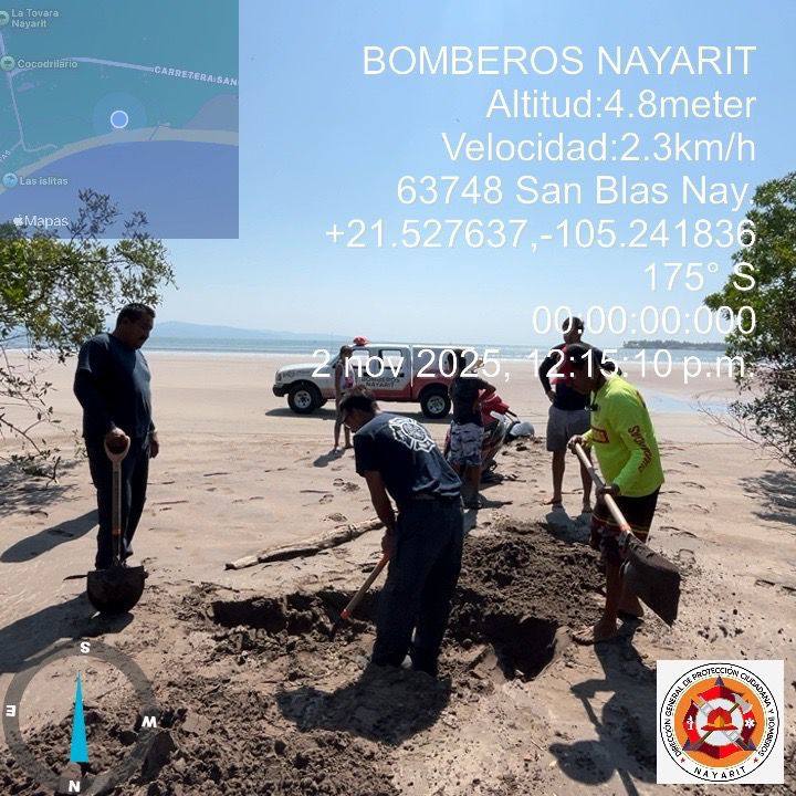 La Secretaría de Seguridad y Protección Ciudadana a través de la Dirección General de Protección Ciudadana y Bomberos activa protocolos de actualización ante el deceso de un cetáceo en la playa Las Islitas, del municipio de San Blas.