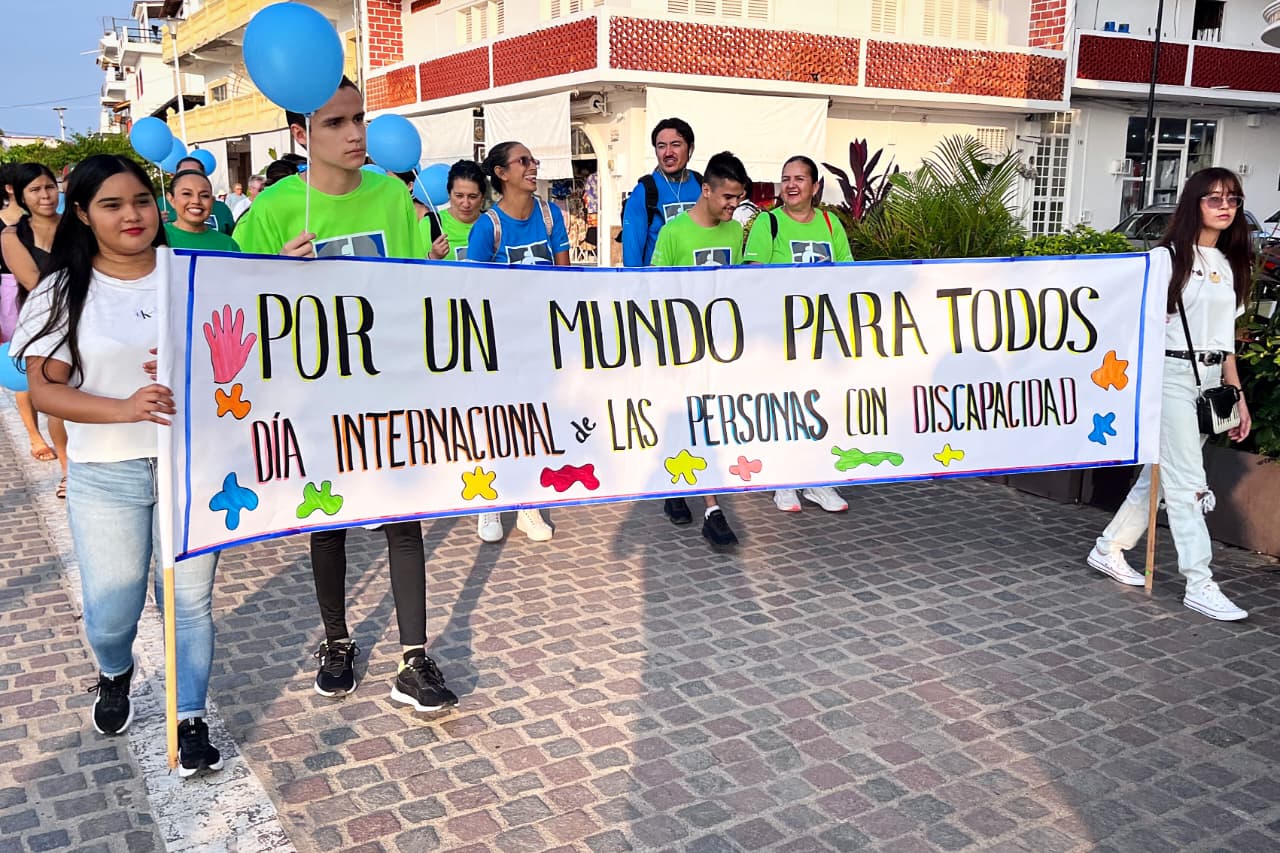 Familias y autoridades participaron este 3 de diciembre en la caminata por el Día Internacional de las Personas con Discapacidad, que reunió a más de 100 asistentes desde el Malecón hasta los Arcos. Al concluir el recorrido, la presidenta del DIF Municipal, Claudia Peña, en representación del alcalde Luis Munguía González, dio la bienvenida y agradeció a asociaciones y colectivos por sumarse a esta jornada incluyente.