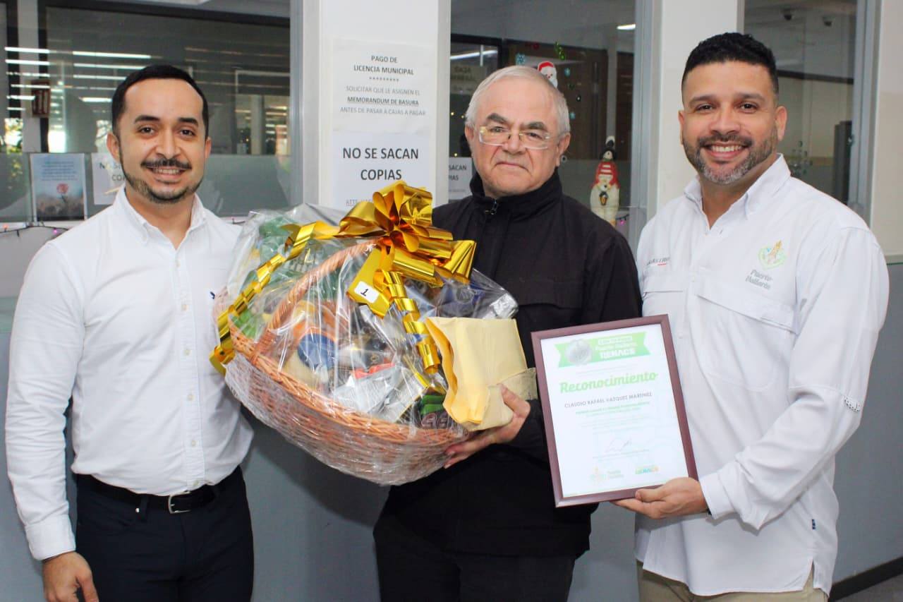Vásquez Martínez, quien se siente contento de ser responsable con este pago desde hace 25 años, agradeció al Gobierno de Luis Munguía por el reconocimiento y la canasta navideña entregados. Javier Estrada, quien llegó a las 7:30 de la mañana del 1 de enero, y Luis Fregoso, quien llegó a las 4:10 de la mañana del 2 de enero, también fueron reconocidos por su puntualidad y recibieron reconocimientos y canastas navideñas.