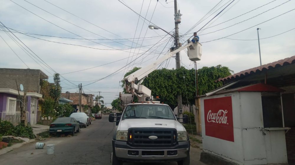 El equipo de Alumbrado P煤blico del Gobierno de Xalisco, realiza labores de limpieza y reactivaci贸n de luminarias en distintos puntos de las calles M茅xico y V. Carranza