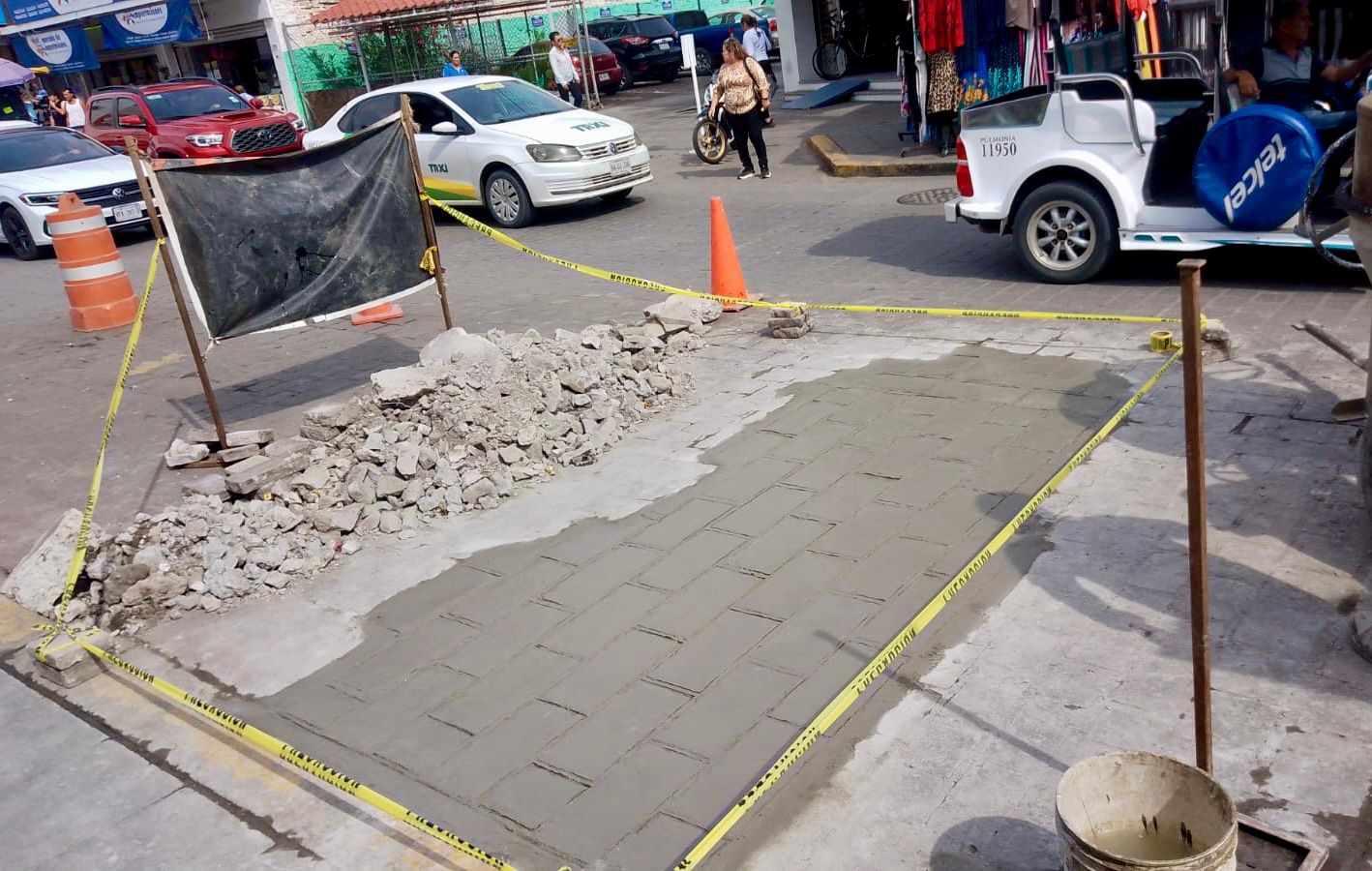 Mazatlán, Sinaloa, 14 de enero de 2026.–Por instrucción de la Presidenta Estrella Palacios Domínguez, la Dirección de Obras Públicas del Ayuntamiento lleva a cabo trabajos de reparación en banquetas y vialidades del Mercado Municipal “José María Pino Suárez”, ubicado en el Centro de la ciudad, con el objetivo de mejorar la seguridad de usuarios y locatarios del emblemático recinto comercial del puerto.