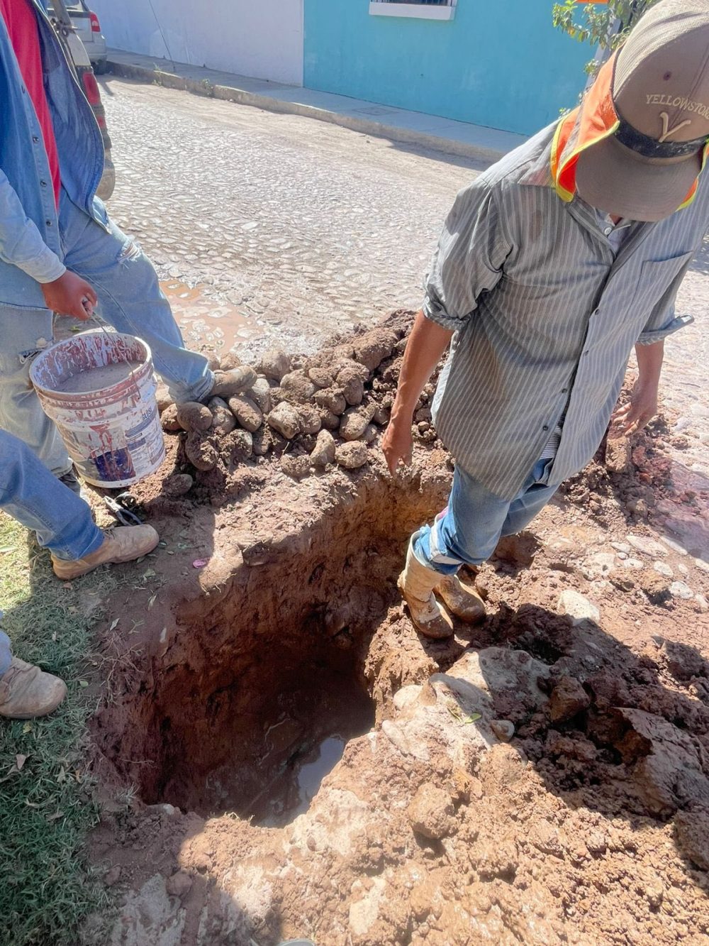 Con el objetivo de evitar el desperdicio del vital líquido y mejorar la presión en la red, el equipo de Oromapas Acaponeta realiza labores de reparación de fuga de agua sobre la calle Guerrero, en la colonia centro.