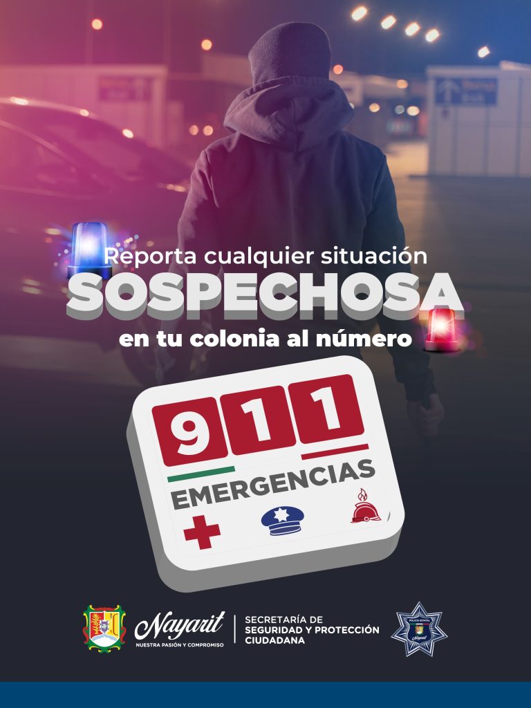 La seguridad es tarea de todas y todos. Si detectas cualquier situación sospechosa en tu colonia, repórtala de inmediato al 911. Tu llamada puede marcar la diferencia y ayudar a mantener seguras a nuestras comunidades.