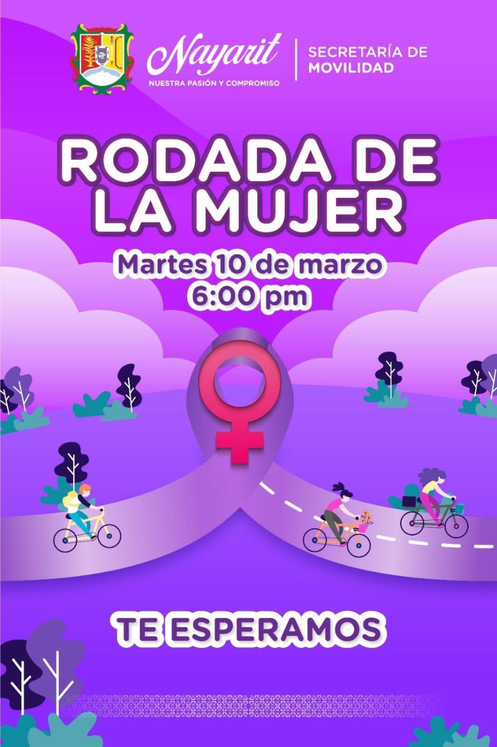Hoy martes 10 de marzo te esperamos en la Secretaría de Movilidad para participr en la Rodada de la Mujer en punto de las 6:00 pm.