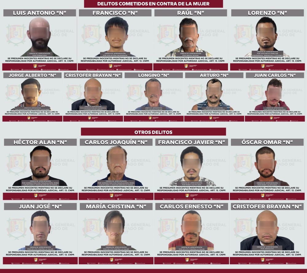 También se cumplimentaron 9 órdenes de aprehensión adicionales por otros delitos, entre los que destacan: