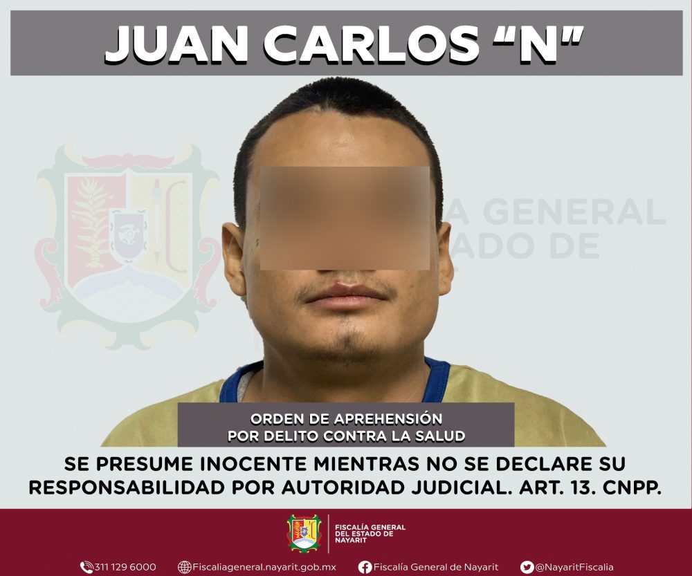 Agencia de Investigación Criminal ejecutó una orden de aprehensión en la ciudad de Tepic contra Juan Carlos “N”, por su presumible participación en hechos que para la ley configuran el delito contra la salud en su modalidad de narcomenudeo -en su hipótesis de posesión de psicotrópicos-, cometido en agravio de la sociedad.