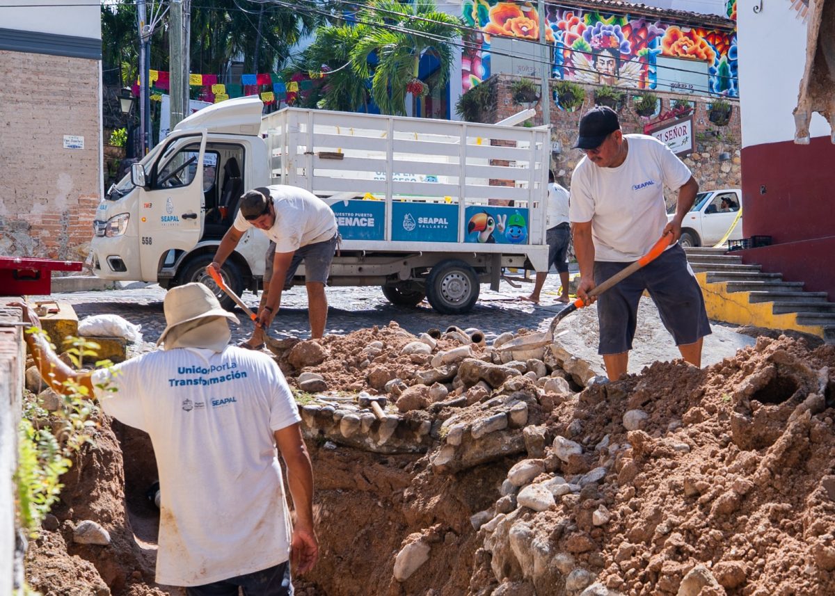 Nuestro equipo avanza en la reparación de una tubería de agua potable que ya cumplió su vida útil en la calle Josefa Ortiz de Domínguez, para restablecer el servicio lo antes posible a hogares y comercios de las colonias Centro y 5 de Diciembre.