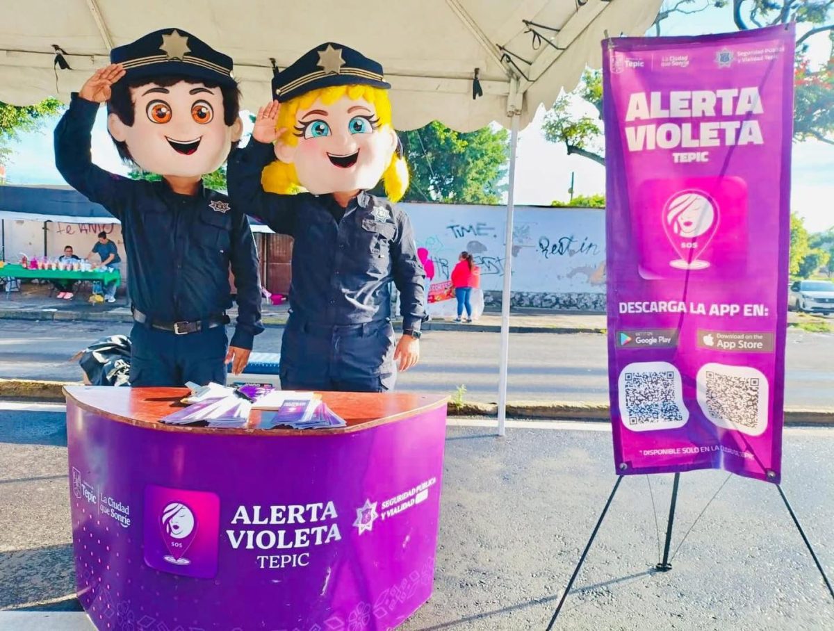 Seguridad Pública y Vialidad Tepic estuvo presente en la carrera “Caminata por la Vida”, junto a Preventín y Preventina, para dar a conocer la app Alerta Violeta, una herramienta digital que permite reportar de manera inmediata cualquier situación de peligro.