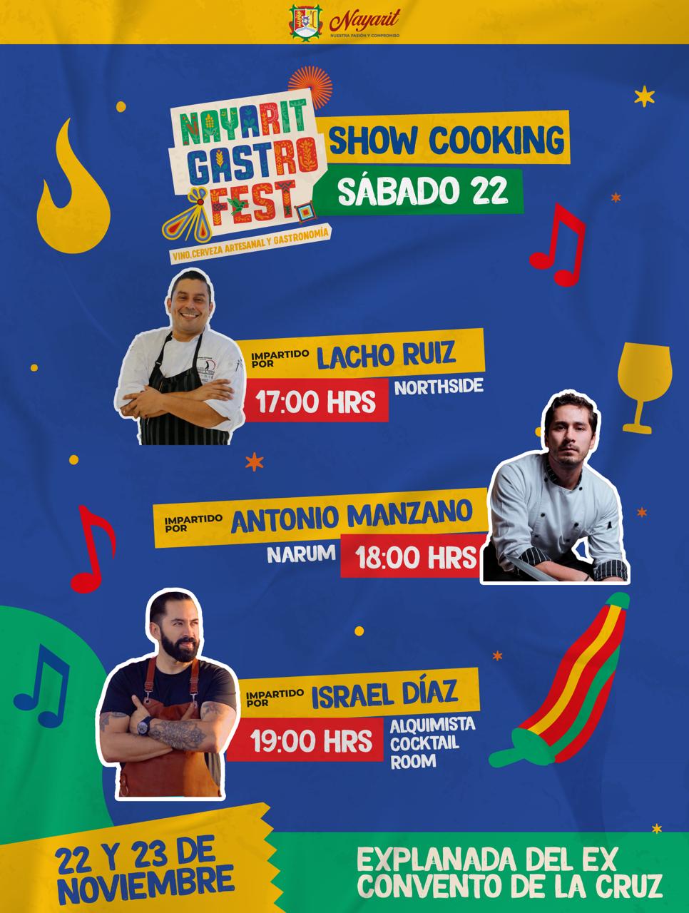 El Nayarit Gastro Fest te trae los mejores Show Cooking en la emblemática explanada del Ex Convento de la Cruz, donde el talento de grandes chefs se fusiona con los sabores que distinguen a nuestro estado.