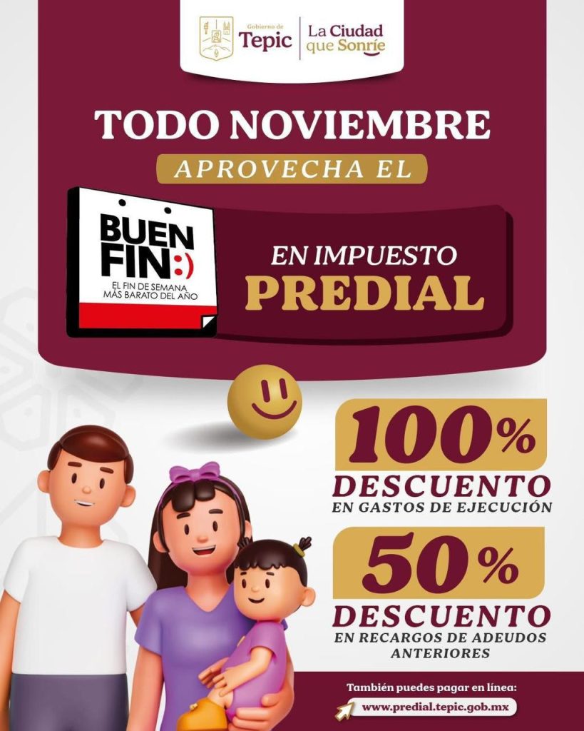 SIGUEN LOS DESCUENTOS DEL BUEN FIN para ponerte al corriente con el pago del impuesto predial, 100% de condonación en gastos de ejecución y 50% en recargos de adeudos anteriores, acude a la dirección de Registro Predial, módulos de la Presidencia Municipal y oficinas del SIAPA.