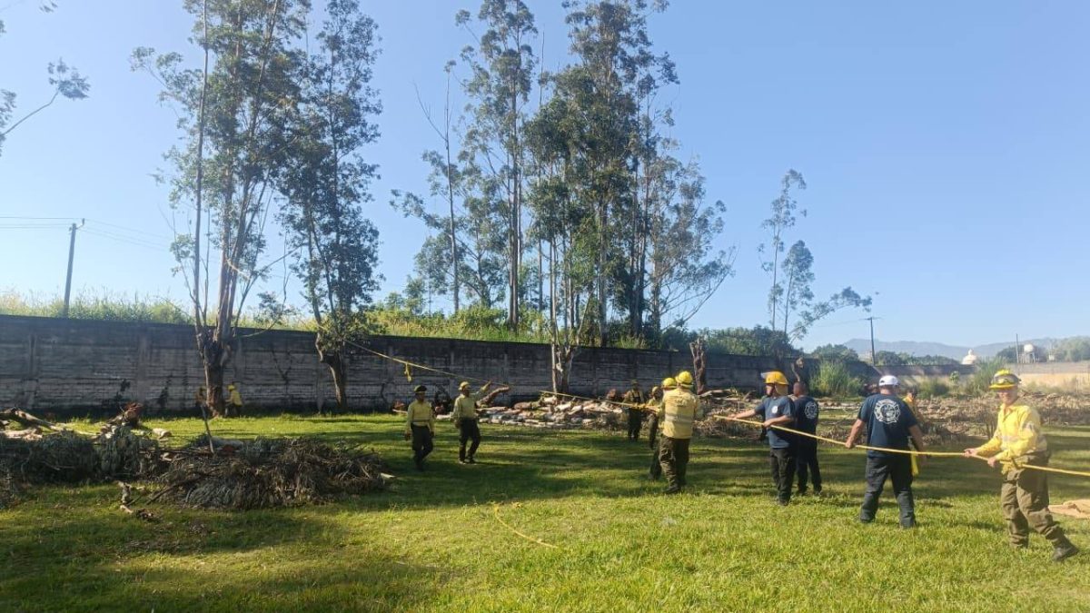 La Secretaría de Seguridad y Protección Ciudadana a través de la Dirección General de Protección Ciudadana y Bomberos en coordinación con la Secretaría de Desarrollo Sustentable, realizan acciones de poda en árboles que presentan riesgo de caer en los diferentes planteles educativos de la entidad.