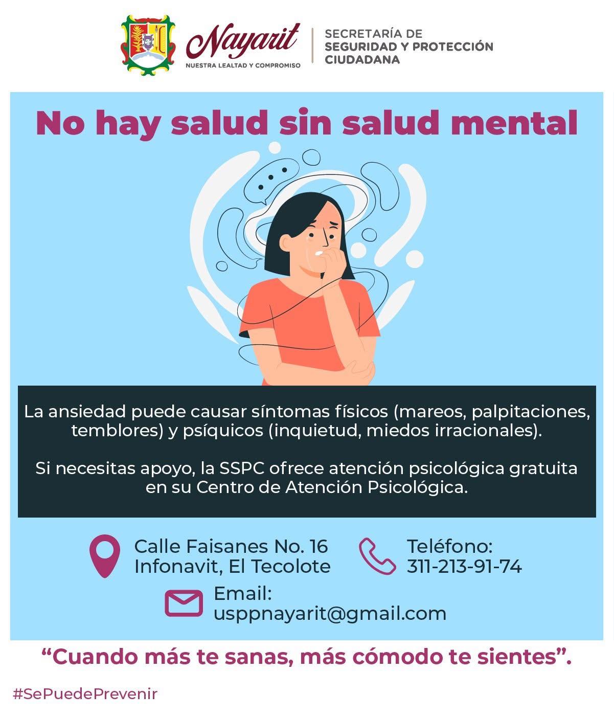 La #SSPCNay te brinda información importante para cuidar de tu salud mental. Muchas ocasiones confundimos la salud mental con estar siempre contentos, pero no lo es.