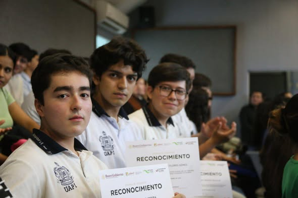 Diego Rodríguez Barrera, Carlos Emiliano Orozco Vallejo y Fernando Adonaí Flores Gómez, estudiantes de la Unidad Académica Preparatoria No. 1 de Tepic, destacaron en el XX Concurso de Transparencia en Corto 2025, obteniendo el primer lugar con su obra audiovisual “La transparencia une”. ![]()