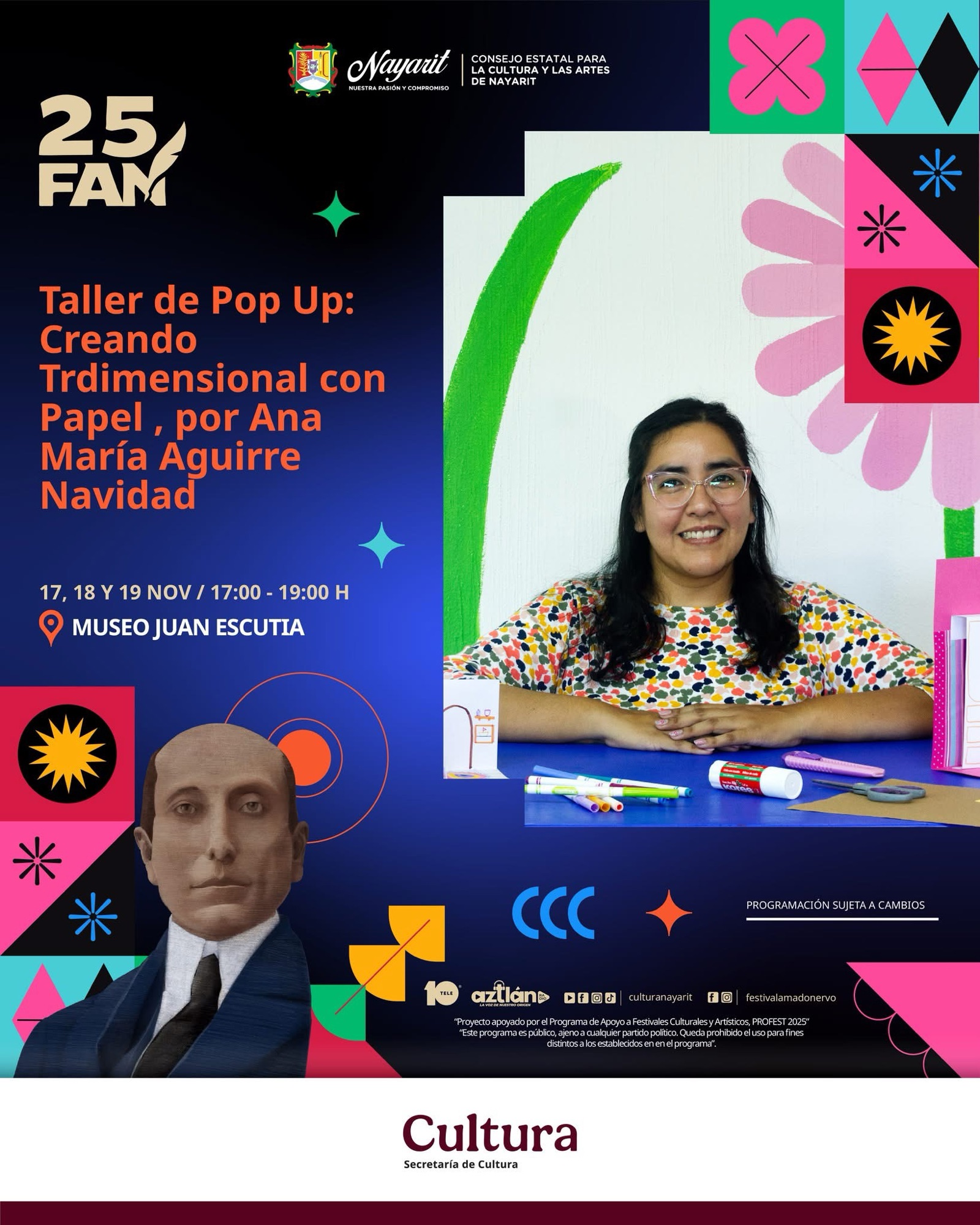 El Consejo Estatal para la Cultura y las Artes de Nayarit invita al público a participar en el Taller de Pop Up: Creando tridimensional con papel, impartido por Ana María Aguirre Navidad, como parte de las actividades del 25° Festival Amado Nervo.