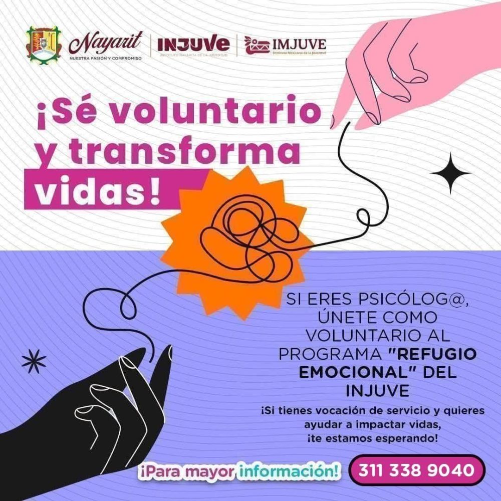 únete como voluntario al programa «Refugio Emocional» que es un componente del INJUVE que cuenta con el apoyo de profesionales para atender de forma segura, personalizada y gratuita a las y los jóvenes. ![]()
