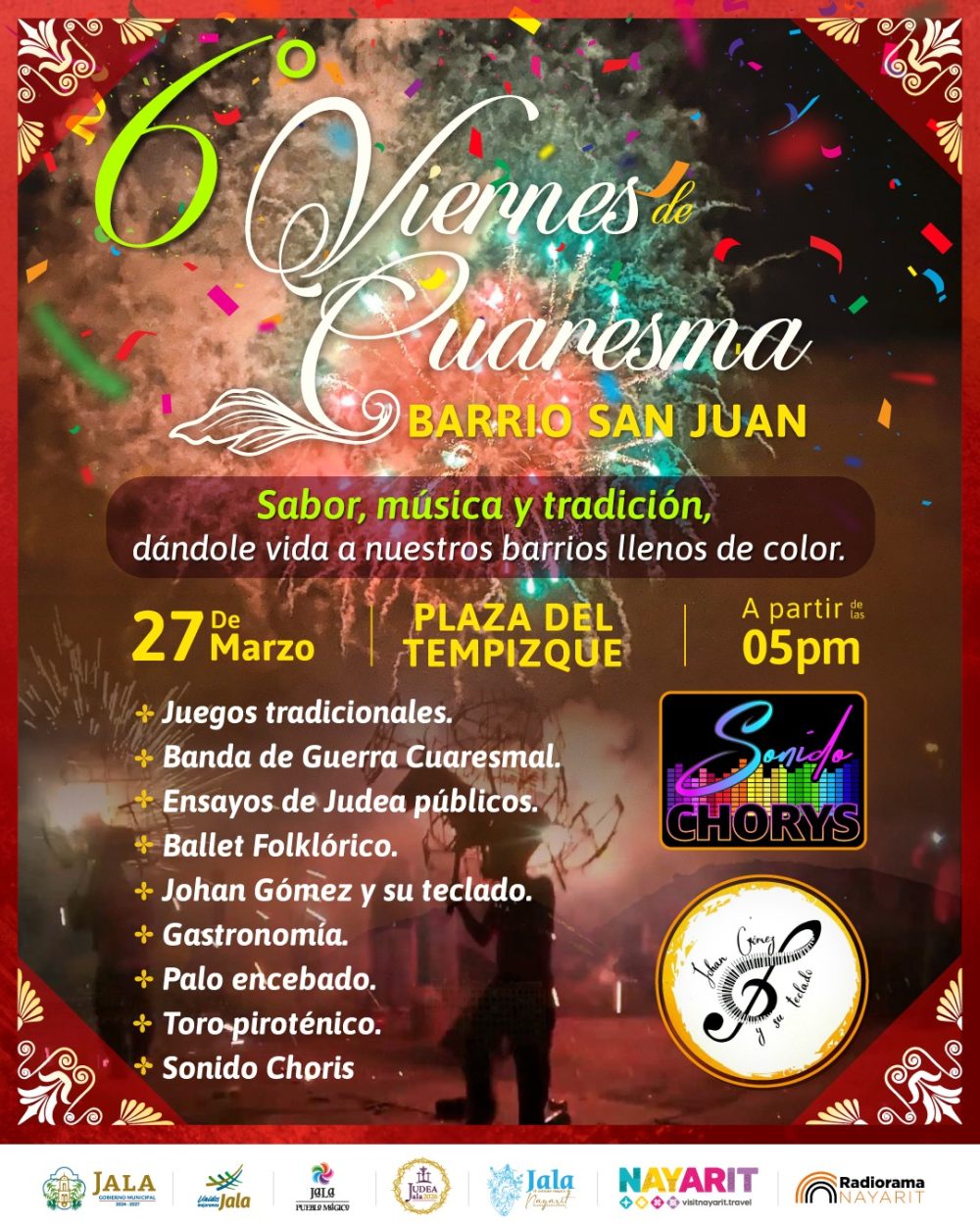 ¡La tradición sigue creciendo y cerramos con gran alegría! Este viernes 27 de marzo te invitamos a vivir el 6° Viernes de Cuaresma en el Barrio San Juan, con una noche llena de fiesta, cultura y tradición.